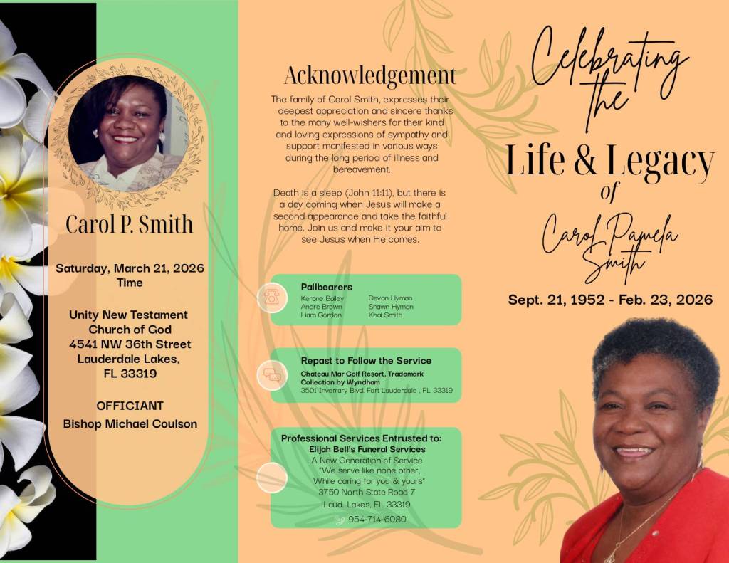 In March 2026, I created a funeral program for the family of Carol Smith.